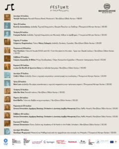 Σολίστ η διεθνώς αναγνωρισμένη Simone Dinnerstein στο 3ο κοντσέρτο για πιάνο και έγχορδα που ο Philip Glass έγραψε ειδικά για εκείνη. Και μια έκπληξη : ένα κονσέρτο για κρητική λύρα και ορχήστρα εγχόρδων γραμμένο ειδικά για τον Δημήτρη Βακάκη από τον μεγάλο Γάλλο συνθέτη Karol Beffa.